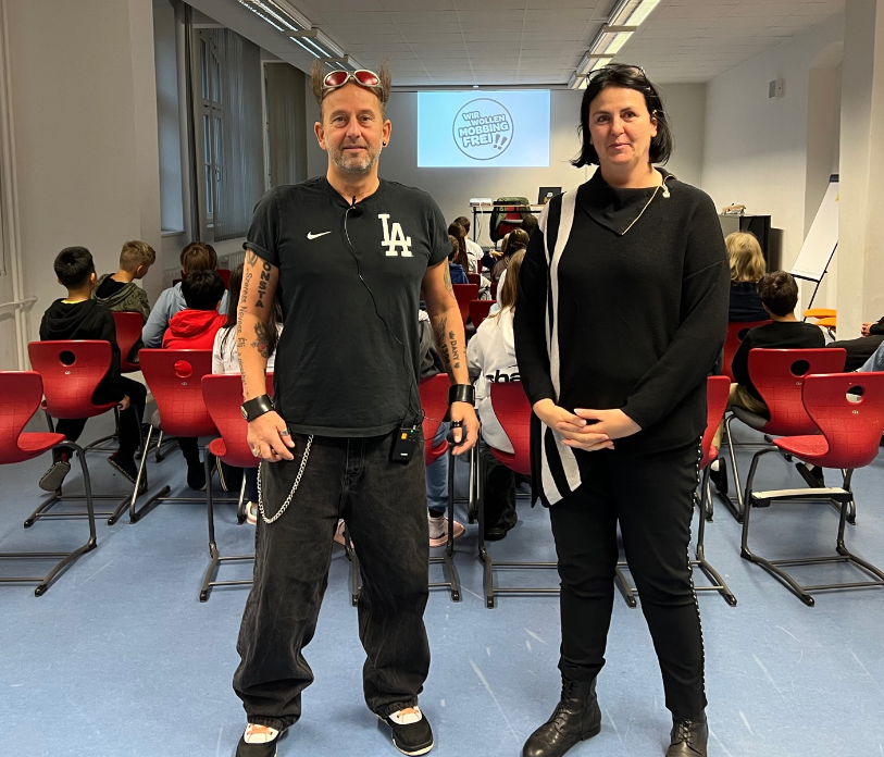 Am 14. Und 15.Oktober fand an unserer Schule eine besondere Präventionsveranstaltung zum Thema Mobbing statt. Unter dem Motto „Wir wollen mobbingfrei“ besuchte uns Tom Lehel, der den Schülerinnen und Schülern eindrucksvoll erklärte, wie Mobbing entsteht, welche Formen es annehmen kann und welche Folgen es für Betroffene hat. Offen und ehrlich berichtete er von seinen eigenen Erfahrungen als Mobbing-Opfer und zeigte Wege auf, wie man Mobbing frühzeitig erkennen und verhindern kann.